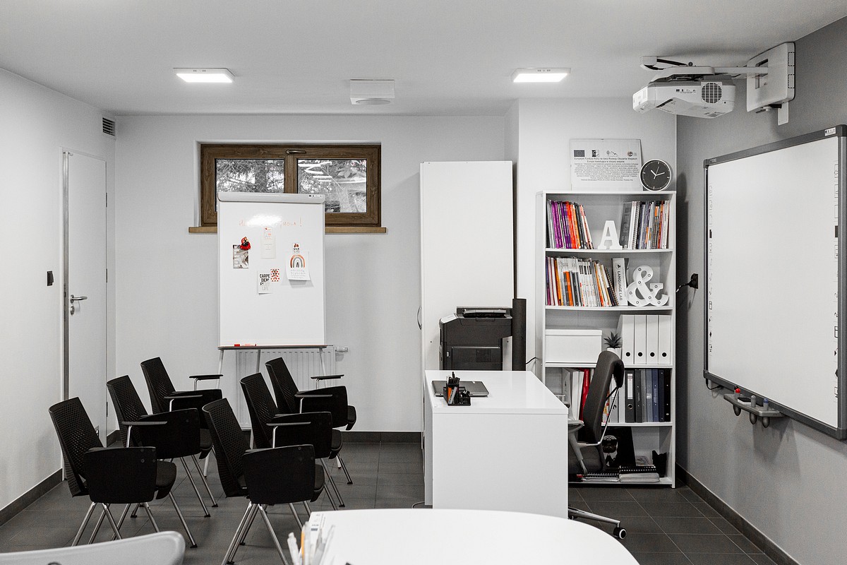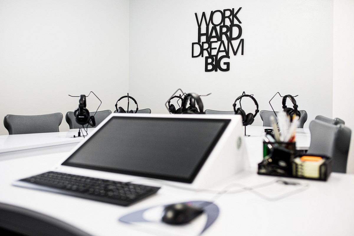 - nauka w profesjonalnej pracowni mulitmedialnej wyposażonej w tablicę interaktywną oraz nowoczesny system nagrywania
